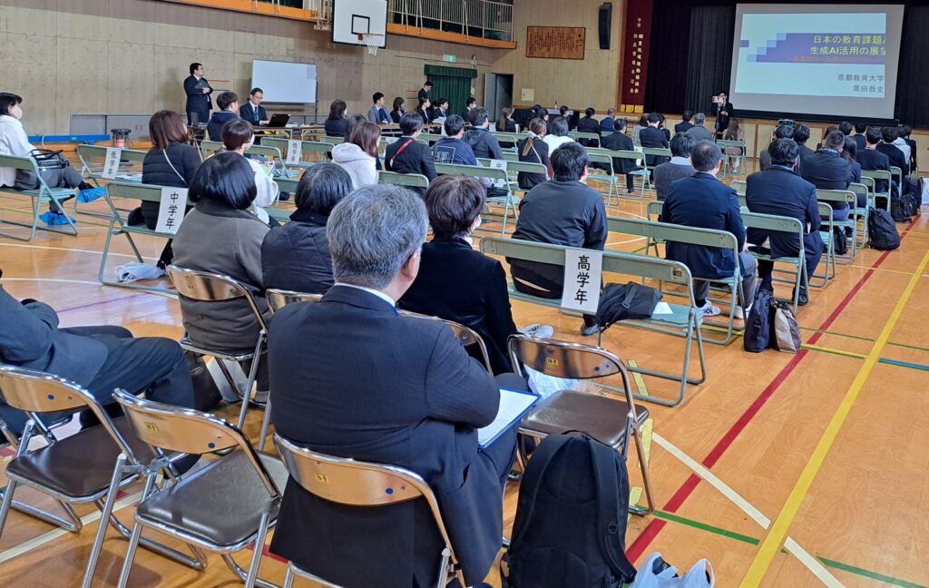 授業は、2年生国語科の「かさこじぞう」と4年生理科の「ものの温度と体積」でした。子どもたちが、AIに働きかけてその返答から自身の考えを振り返ったり、自身の考えと比較・対比したりする際に生成AIを活用するといった取り組みがなされました。