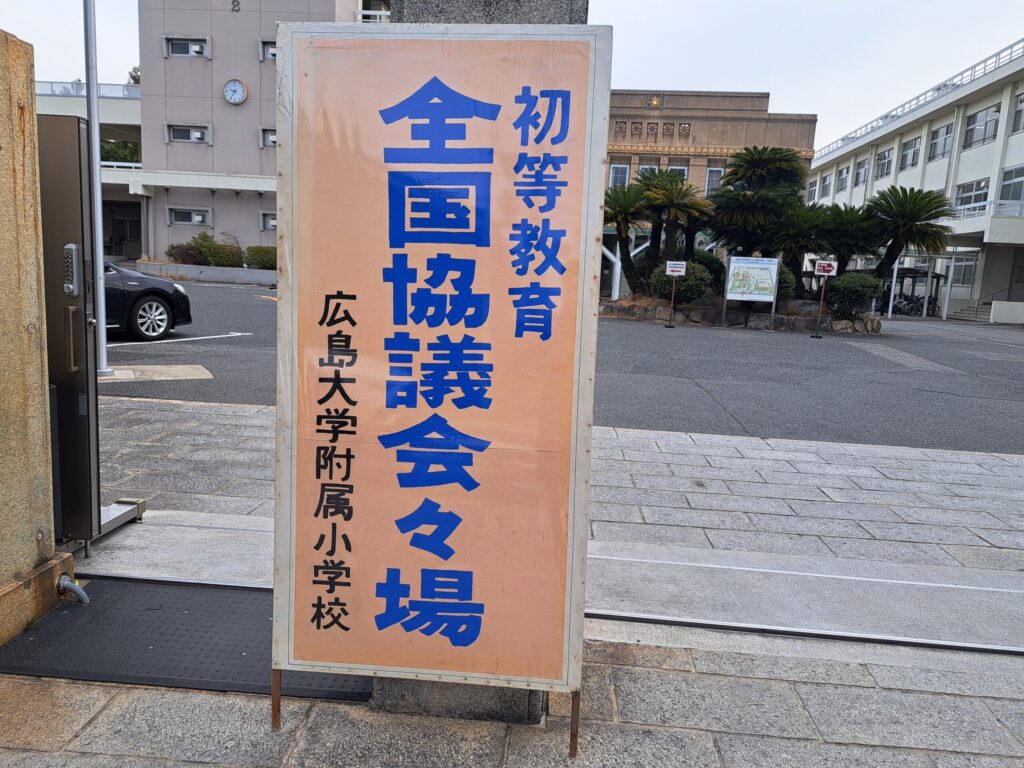 季刊誌「学校教育」の執筆のご縁で、植田悦司先生(写真①)にお声掛けいただき、第71回広島大学附属小学校初等教育全国協議会に参加してきました。1時間目は岩本充弘先生(写真②)による5年生の「立体の形や量を考えよう」を参観し、2時間目は植田先生による2年生「かけ算の学びを広げよう」を参観しました。その後、授業別協議会に参加しました。いずれも非常に工夫された授業でしたので、ちょっと出しゃばって発言し過ぎてしまいました。