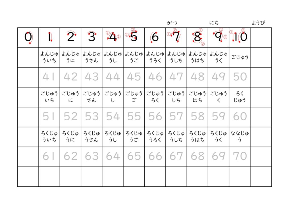100までのすうじのかきかたプリント①